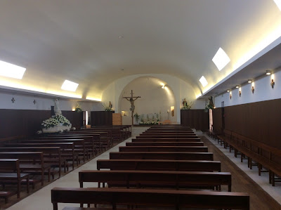 O interior da capela caracteriza-se por um espaço amplo e desproporcionado, cuja conjugação de diversos materiais, mármores e cerâmicos, bem como entradas de luz descontroladas, através de inúmeras caixilharias simples em perfis de ferro, resultam numa desconcertante “amálgama” visual, o que se traduz num total desconforto para os utilizadores e seus celebrantes.